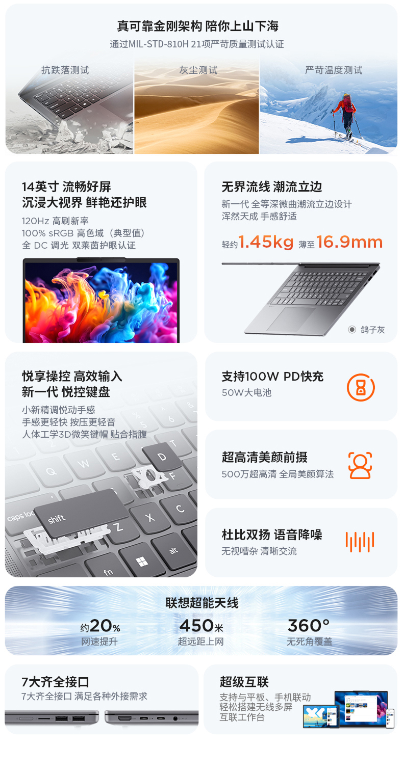 首页 >> 联想小新14 14英寸轻薄笔记本电脑(锐龙R7-H255 16G 512G 高色域 400nit 120Hz高刷)